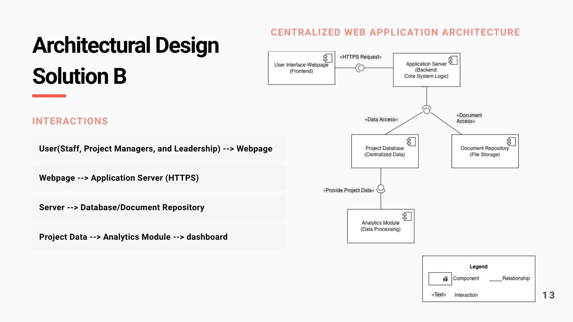 Our second alternative explores a entirely custom Centralized Web Application Architecture.